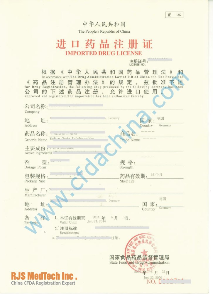 china import drug license (CFDA approval certificate)